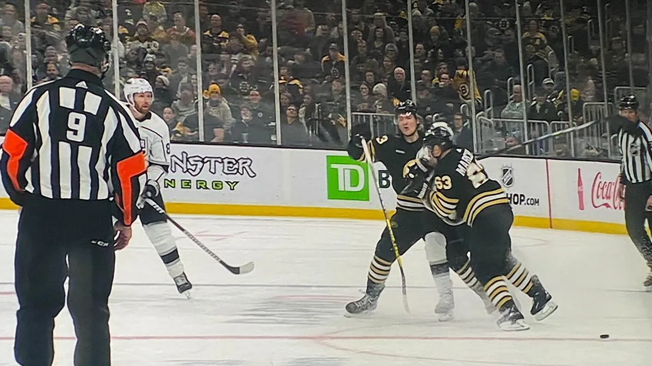 In today's game between the LA Kings and Boston Bruins, Brad Marchand, known for his controversial plays, returned to his questionable tactics late in the third period.