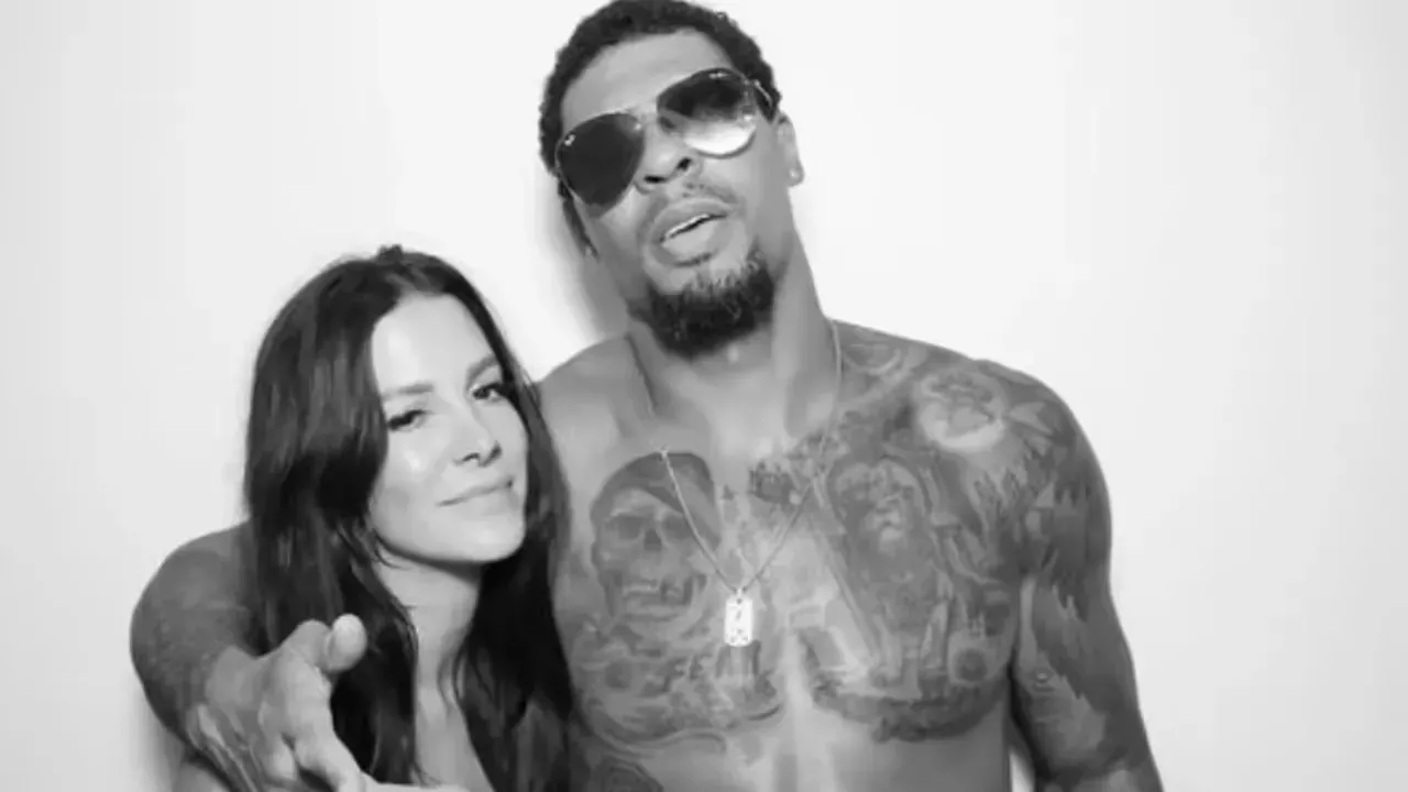 Ryan Reaves poses shirtless at a former teammate's wedding with his wife Alanna