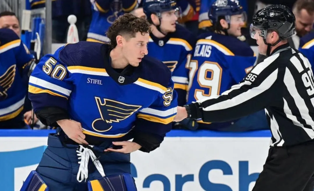 St. Louis Blues goaltender Jordan Binnington got involved in a scrum against the Ottawa Senators late in a blowout game.