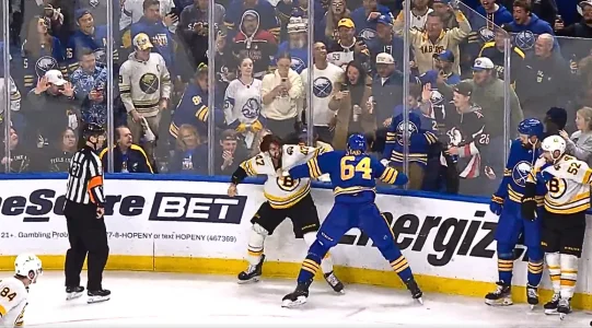 The Bruins knotted their playoff series with a 4-2 win in Buffalo Tuesday night, and the tone flipped the moment Mark Kastelic and Logan Stanley squared off.