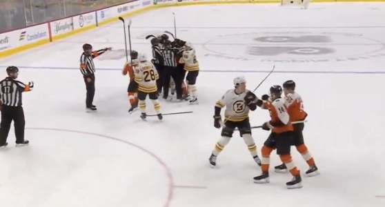 It wasn't a routine shove after the whistle. McAvoy came across and caught the Flyers captain high, and the whole sequence snapped the game into a different mood.