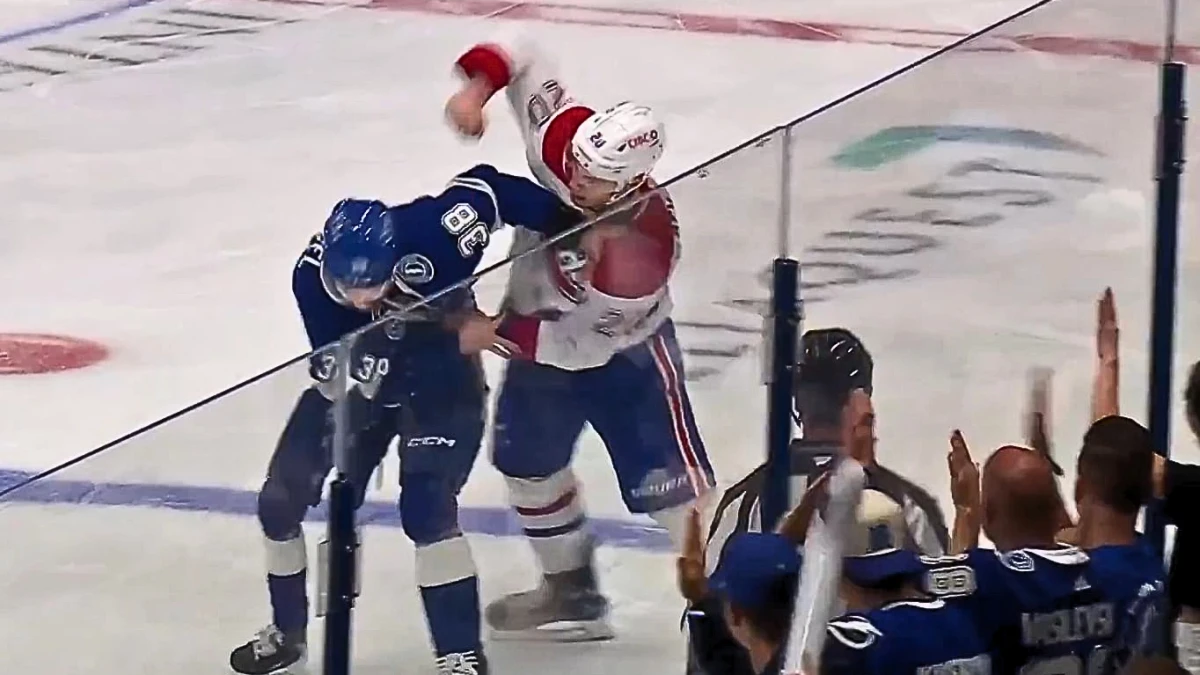 The gloves came off at Amalie Arena in Game 2 of the Tampa Bay Lightning's series against the Montreal Canadiens. Hagel landed one right hand and the Habs winger went down hard.